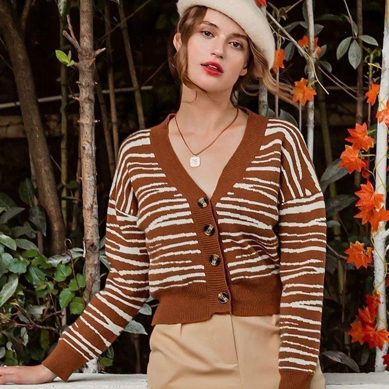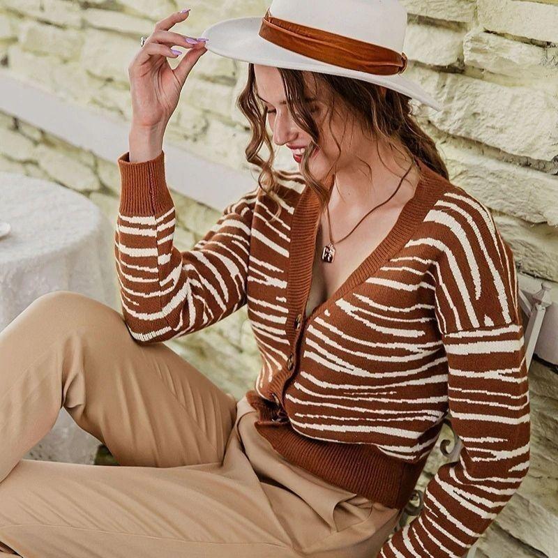 Avec ce vêtement court bohème, votre journée sera remplie d’aventure digne d’un safari ! Enfilez votre pantalon préféré, vos chaussures les plus confortables et restez bien au chaud avec ce gilet à boutonner par-dessus un petit haut. Pour un look plus original, n’hésitez pas à le porter avec les boutons dans le dos et son motif zébré !