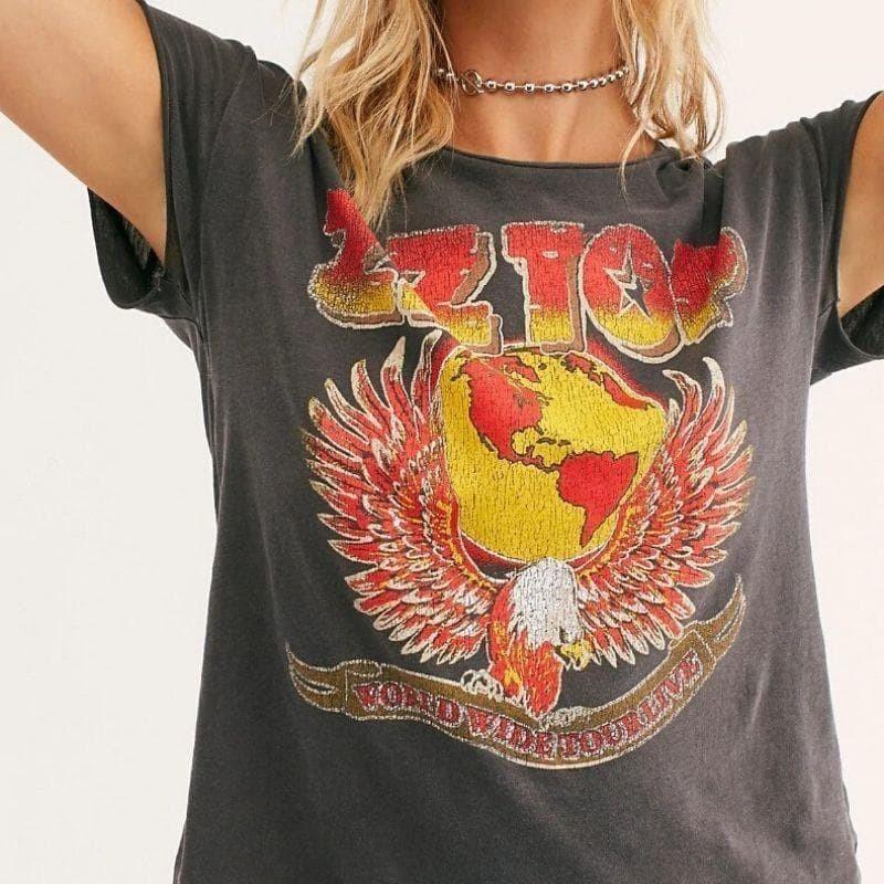Mettez en avant votre côté rock avec ce T-shirt rétro ZZ Top ! Parfait avec une jupe